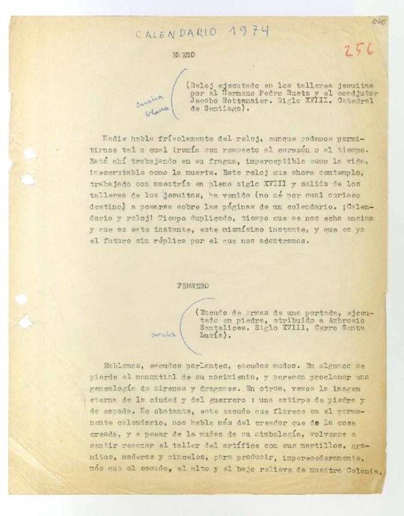 Calendario 1974 [manuscrito] Braulio Arenas.