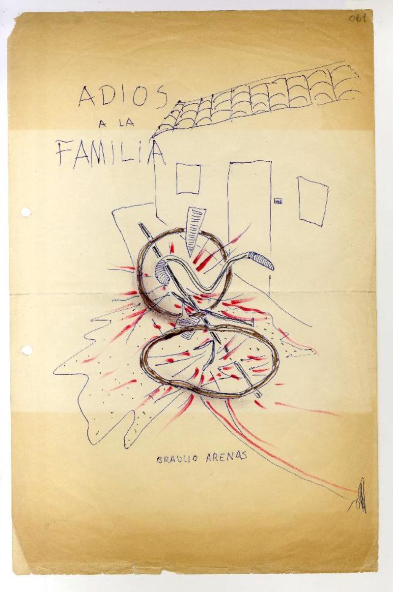 Boceto para la portada del libro Adiós a la familia [manuscrito] Braulio Arenas.