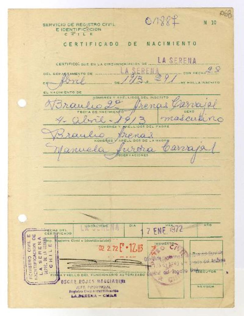 Certificados de Nacimiento - Manuscritos chilenos - Arenas, Braulio - Primera comunión
