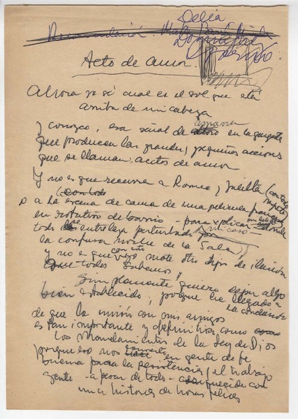 Acto de amor [manuscrito] Delia Domínguez.