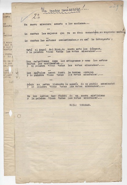 Un nuevo miserere [manuscrito] Zoilo Escobar.