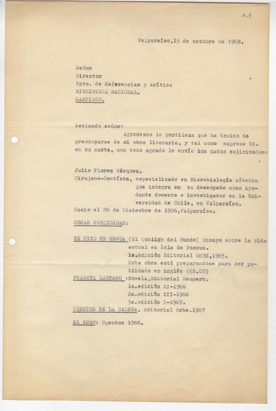 Inicio / Fondos y Colecciones / Archivo del Escritor / Colecciones / Julio Flores Vásquez
