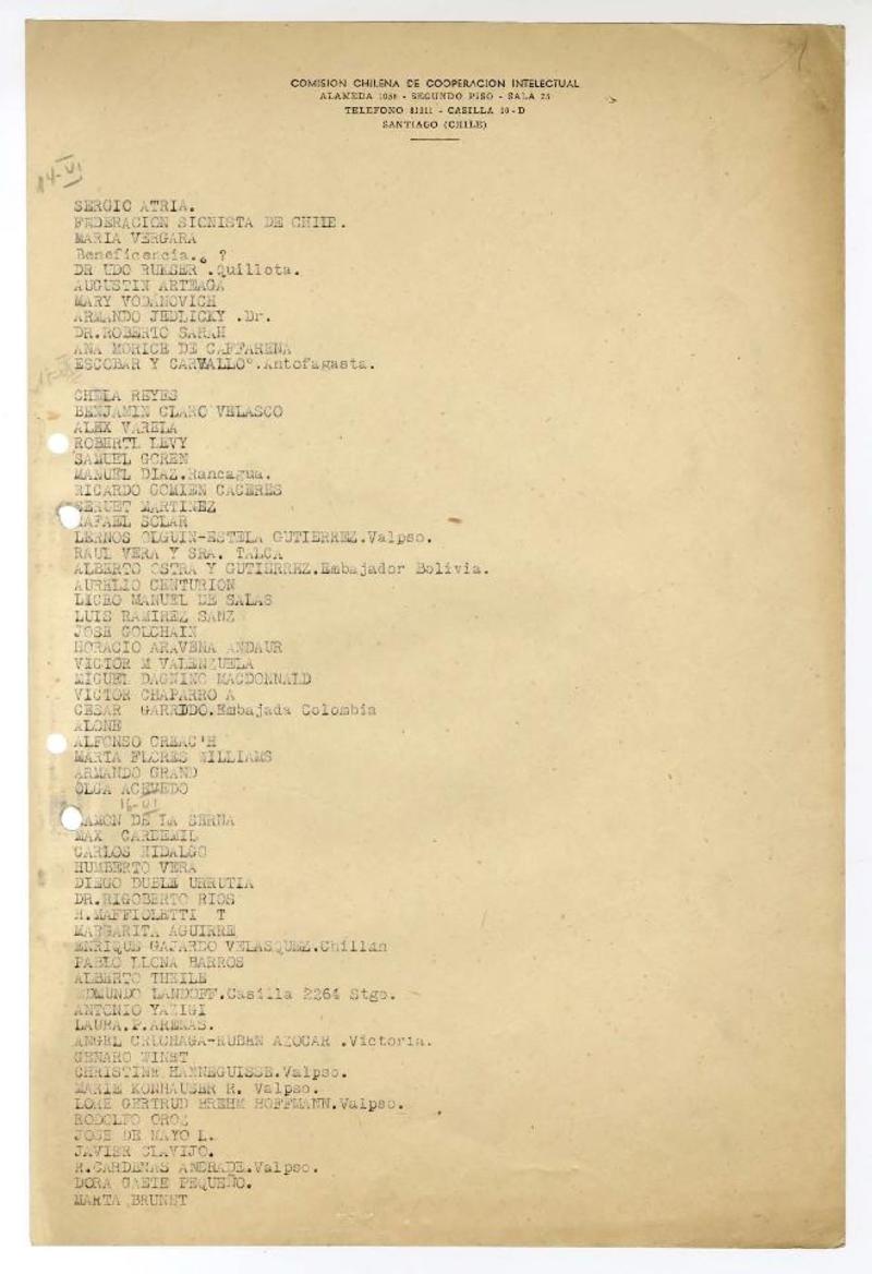 Santiago, Chile [a] José Santos González Vera Cartas, 1942, [manuscrito] Varios autores.