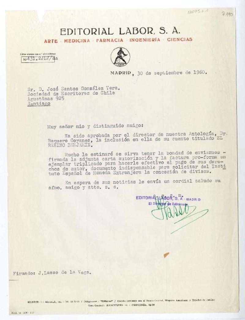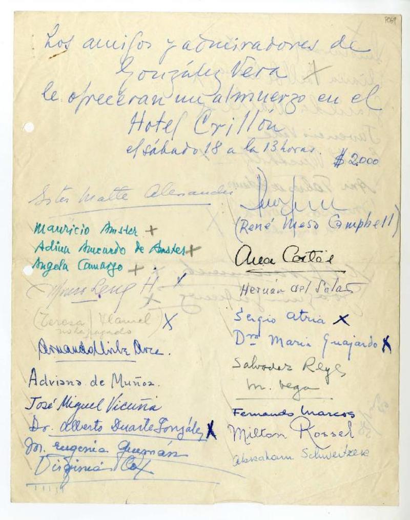 Santiago, Chile [a] José Santos González Vera Cartas, 1960, [manuscrito] Varios autores.