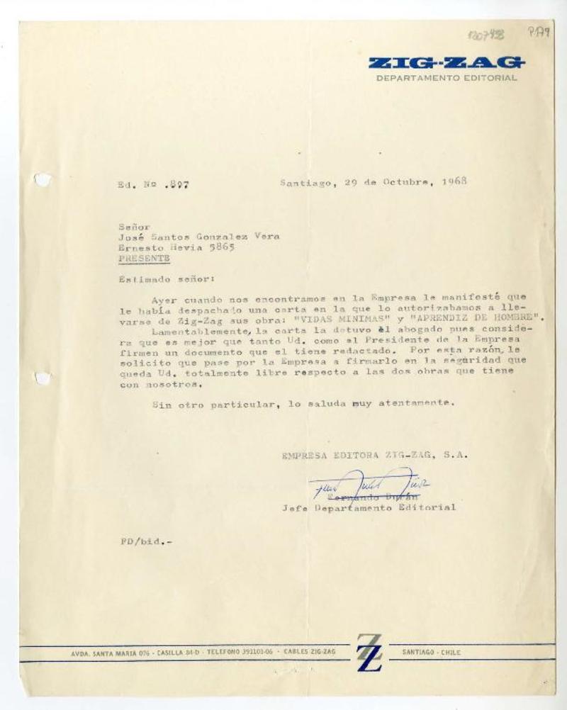 Empresa Editora Zig-Zag (Chile) - Correspondencia - Autores chilenos - Manuscritos chilenos - González Vera, José Santos