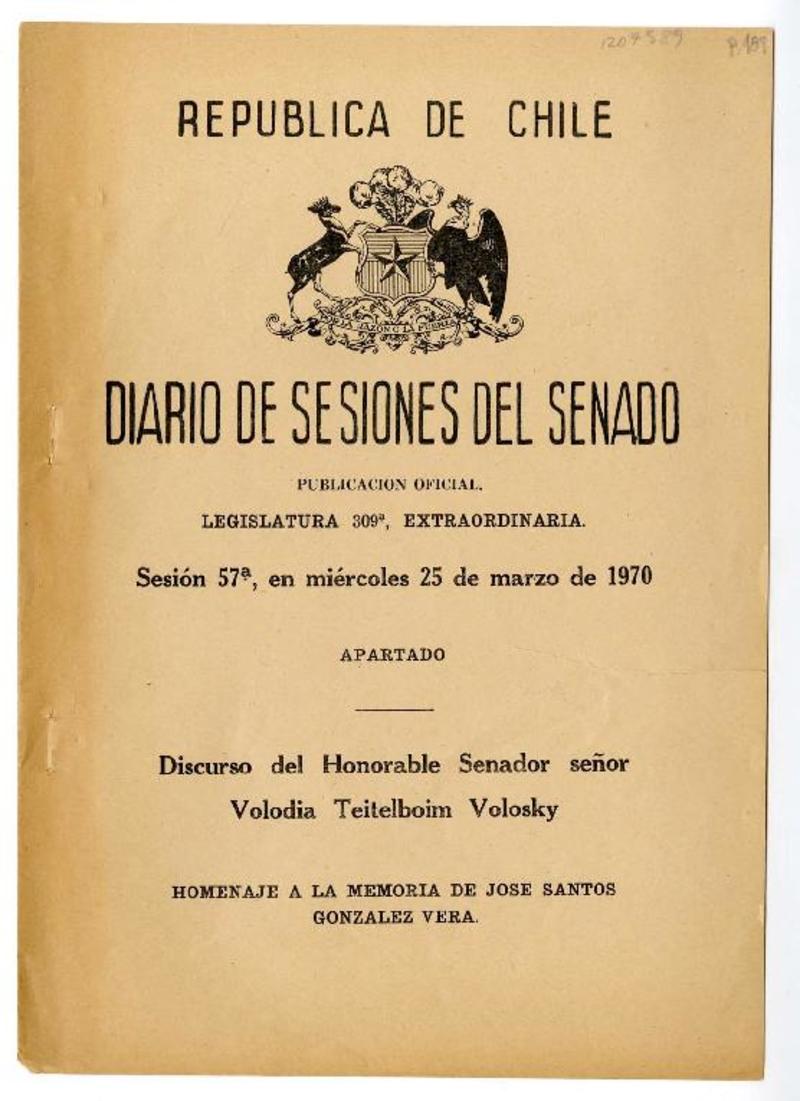 Santiago, Chile [a] José Santos González Vera Cartas, 1957, [manuscrito] Varios autores.