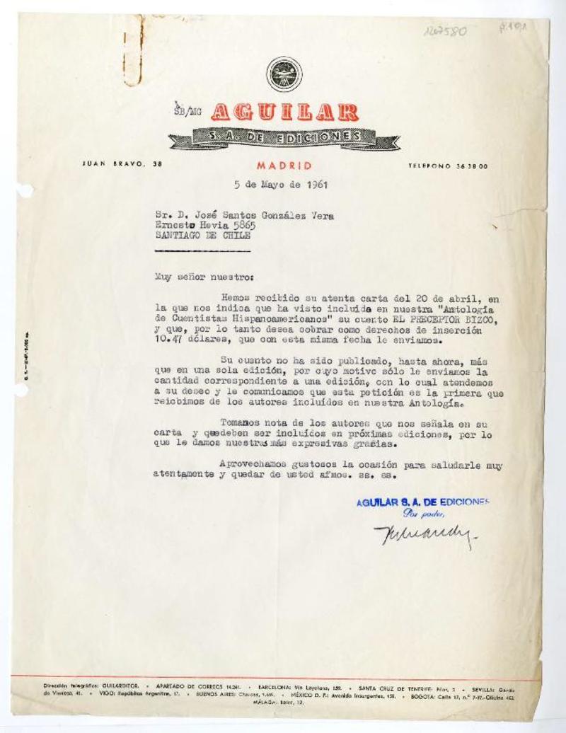 Buenos Aires, Argentina [a] José Santos González Vera, Santiago, Chile Carta, 1959 mayo 11, [manuscrito] Margarita.