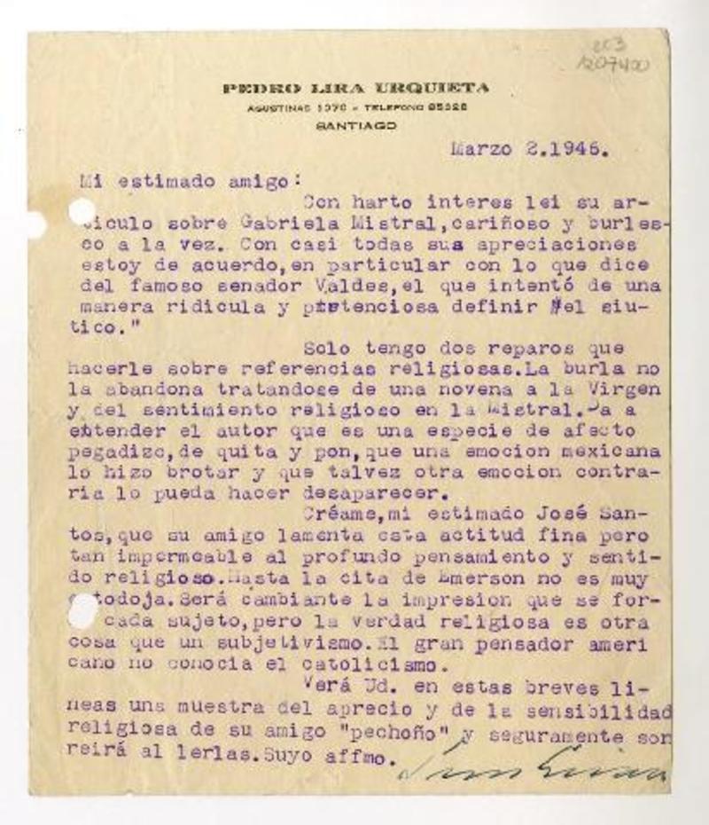 Lira Urquieta, Pedro - Correspondencia - Autores chilenos - Manuscritos chilenos - González Vera, José Santos