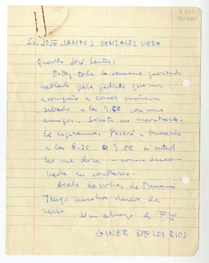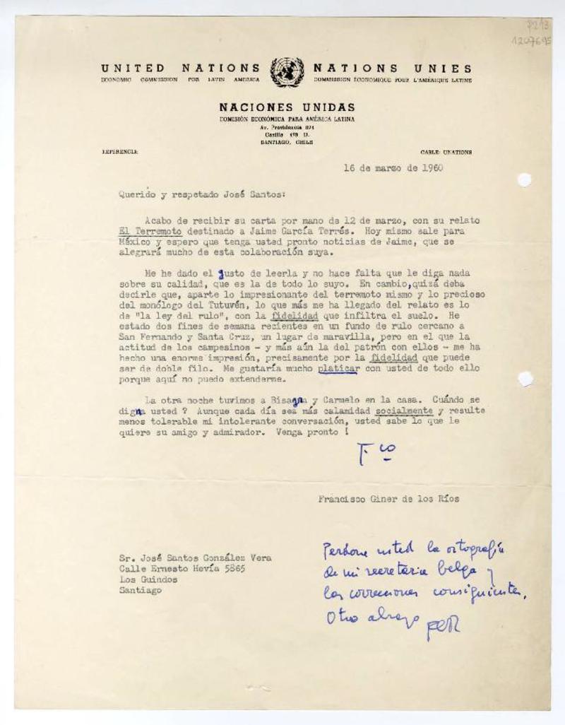 Santiago, Chile [a] José Santos González Vera Carta, 1969 abril 7, [manuscrito] Gonzalo Drago.