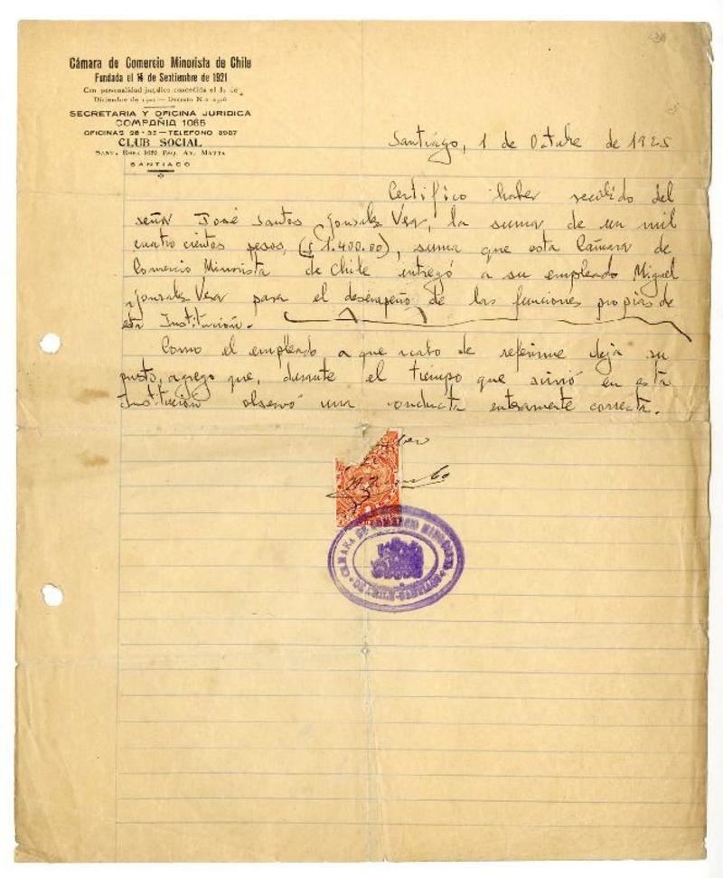 Santiago, Chile [a] José Santos González Vera Mandato, 4 de septiembre de 1940, [manuscrito] María Marchant