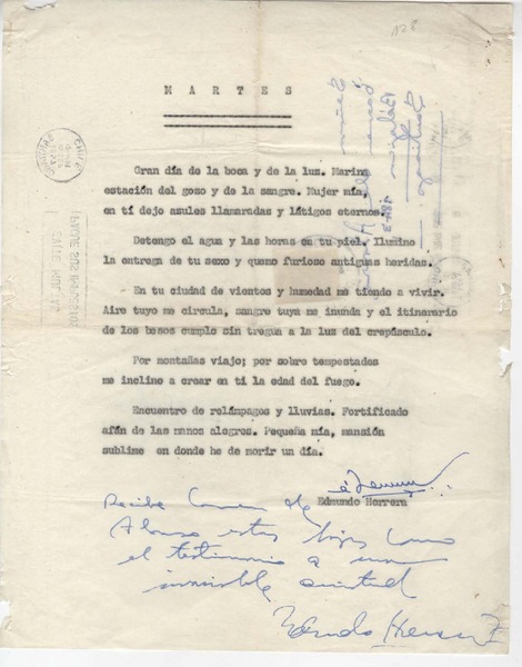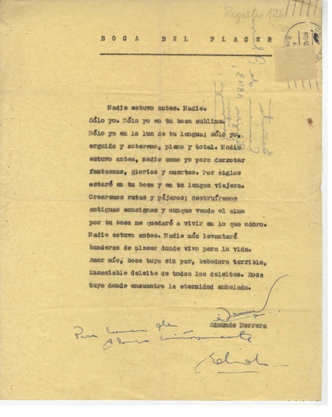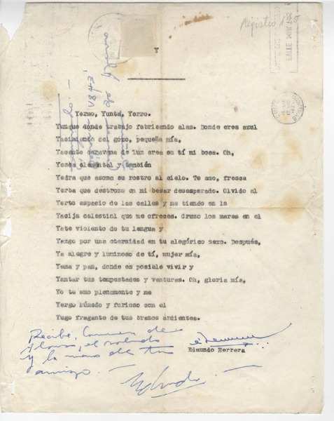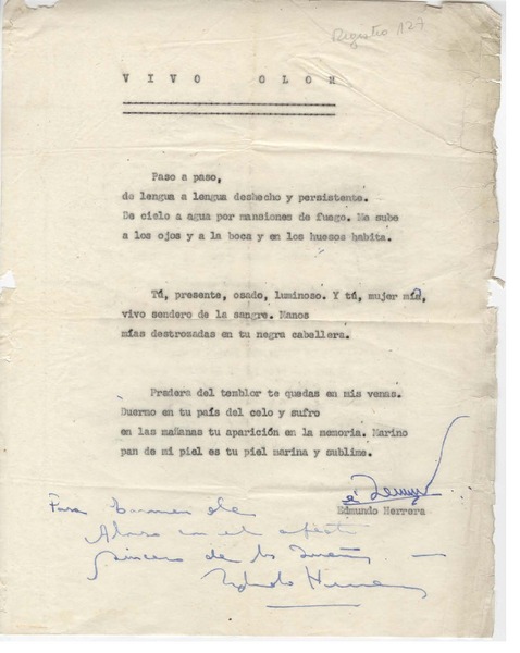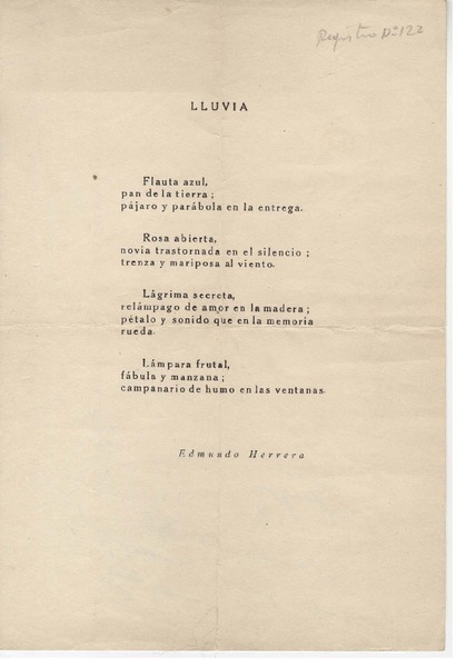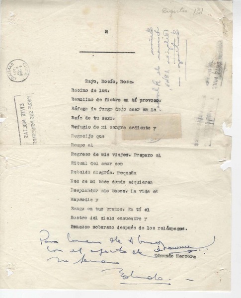 Rayo, rocío, rosa [manuscrito] Edmundo Herrera.