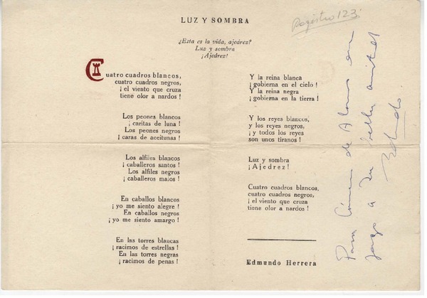 Luz y sombra [manuscrito] Edmundo Herrera.