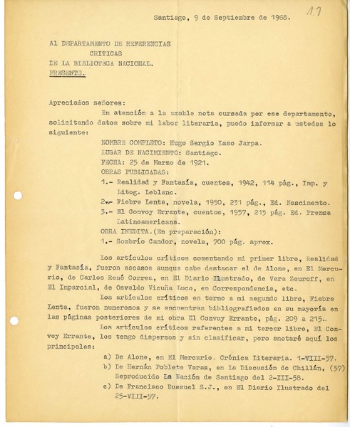 Inicio / Fondos y Colecciones / Archivo del Escritor / Colecciones / Hugo Sergio Laso Jarpa