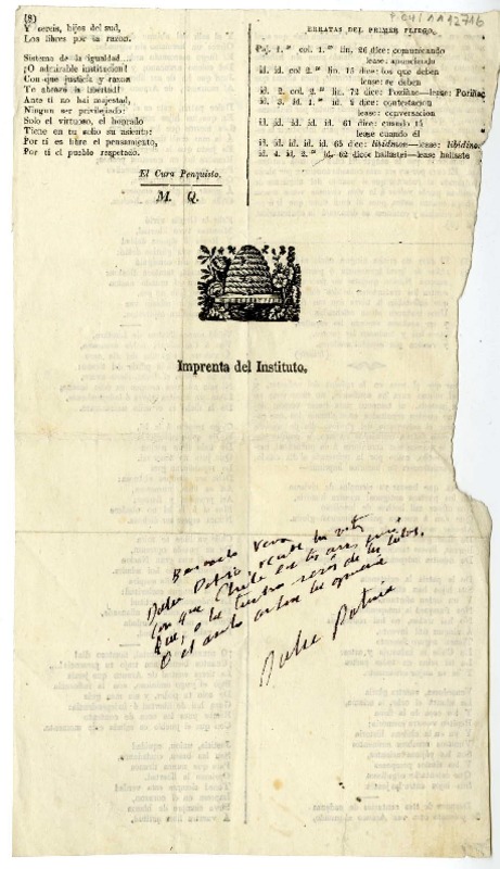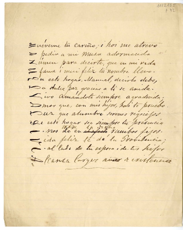 Acróstico 1 [manuscrito] Eusebio Lillo.