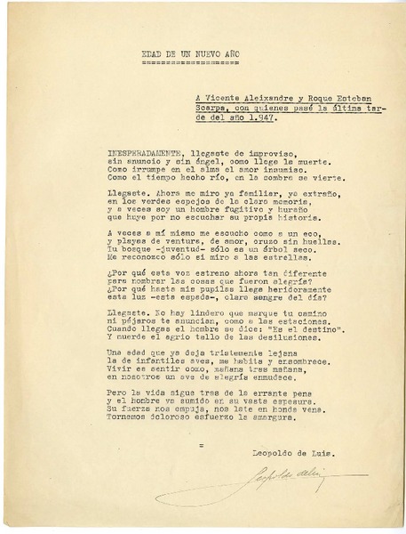 Edad de un nuevo año [manuscrito] Leopoldo de Luis.