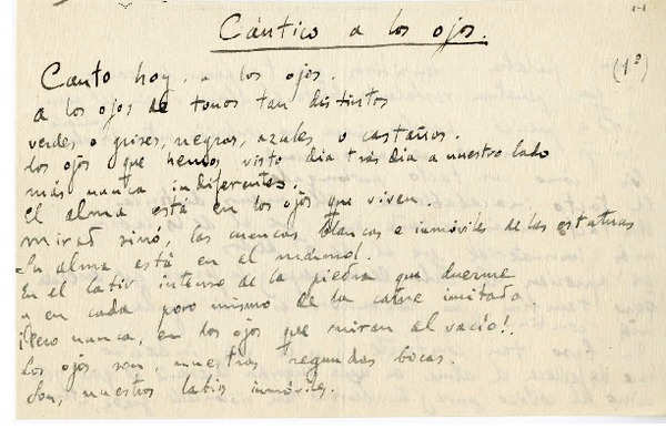 Cántico sobre los ojos [manuscrito] Julio Aumente Martínez Rücker.
