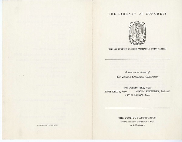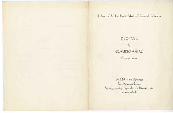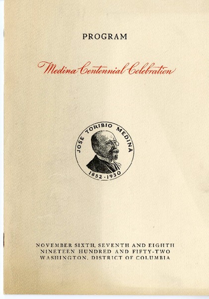 Program Medina centennial celebration [manuscrito] José Toribio Medina.