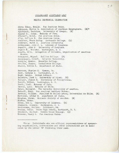 Preliminary acceptance list [manuscrito] José Toribio Medina.