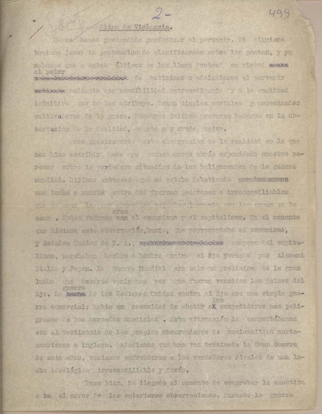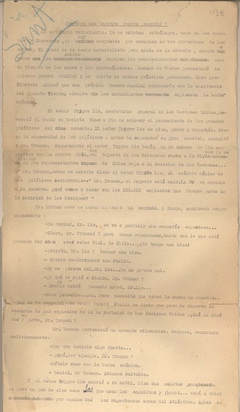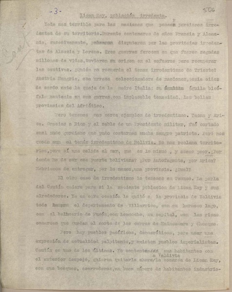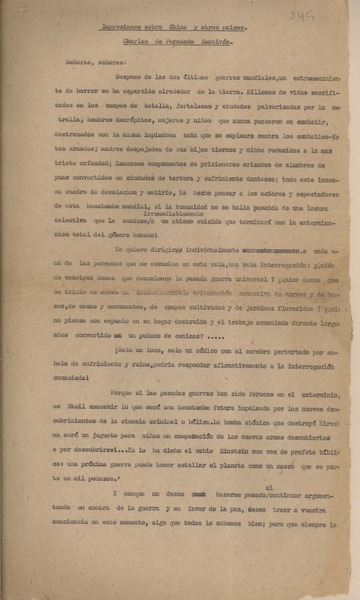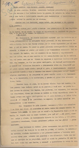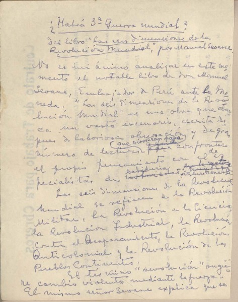 Veremos una tercera guerra mundial? [manuscrito] Fernando Santiván.