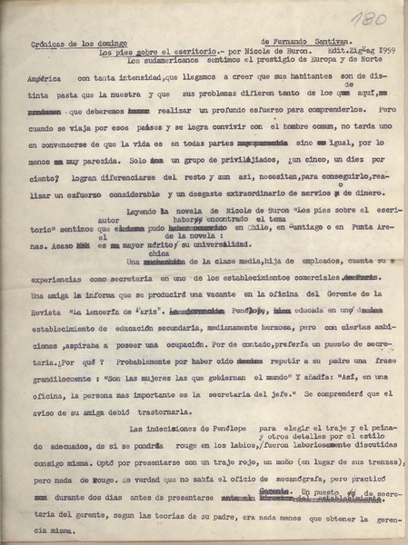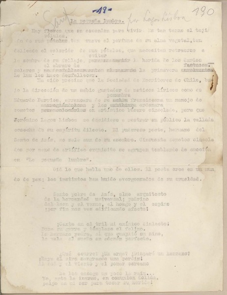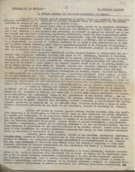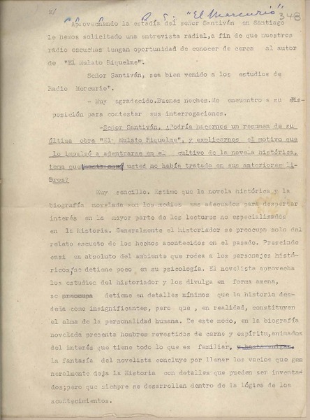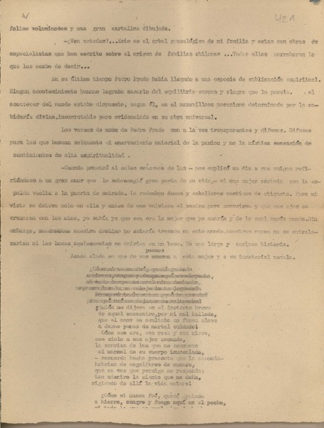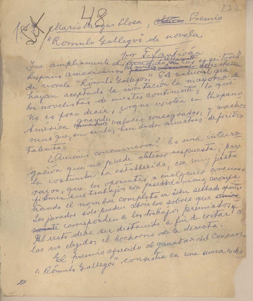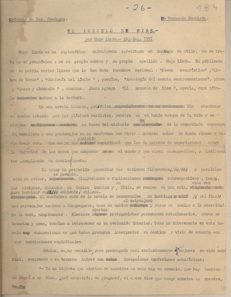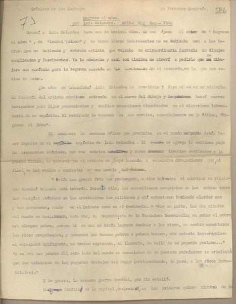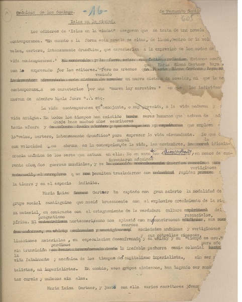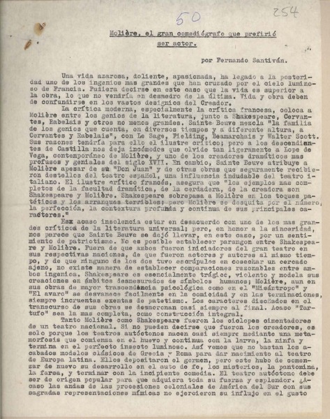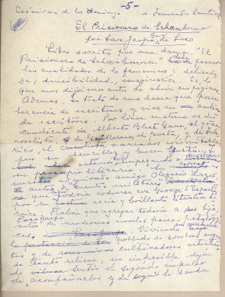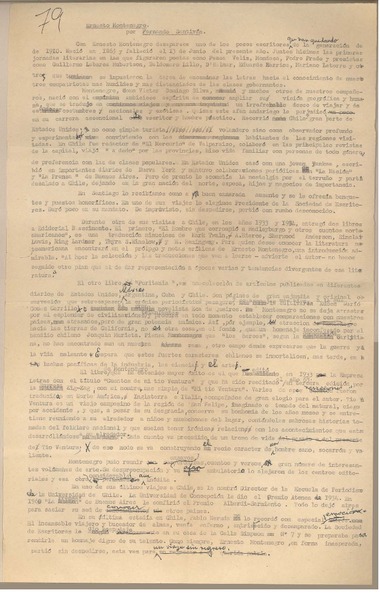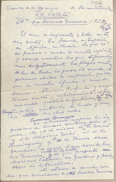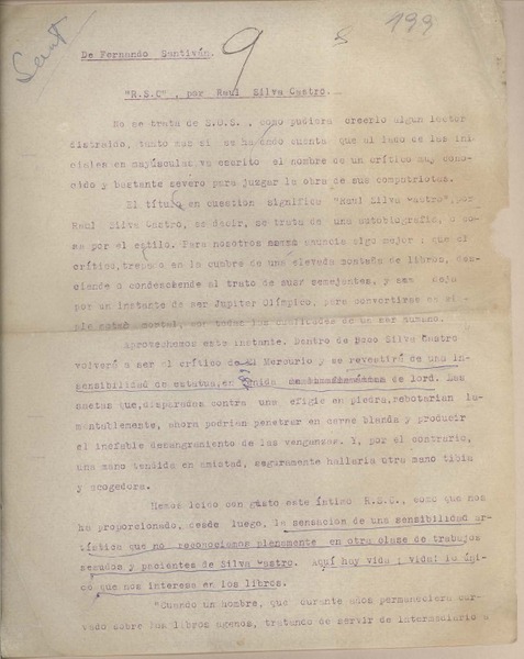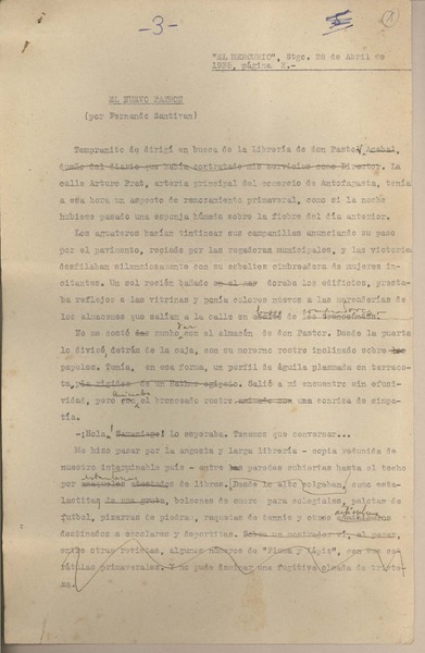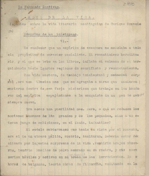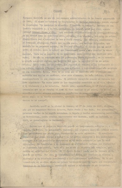 [A pesar de su prestigio de buenmozo...] [manuscrito] Fernando Santiván.