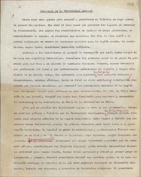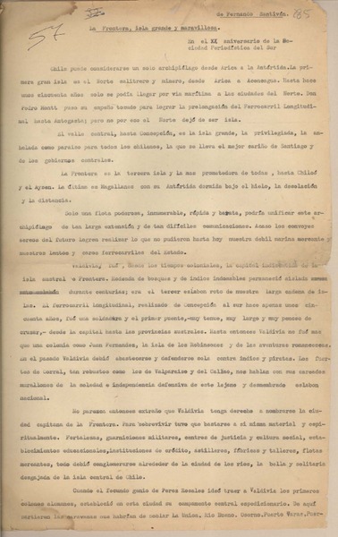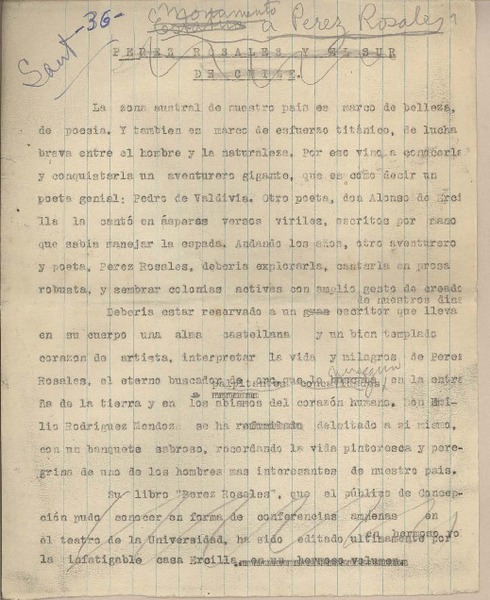 S.E. el Presidente en Valdivia [manuscrito] Fernando Santiván.