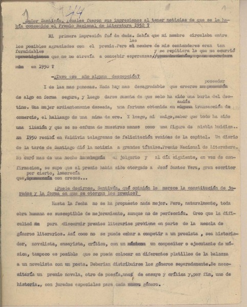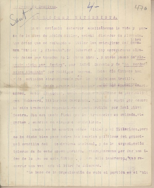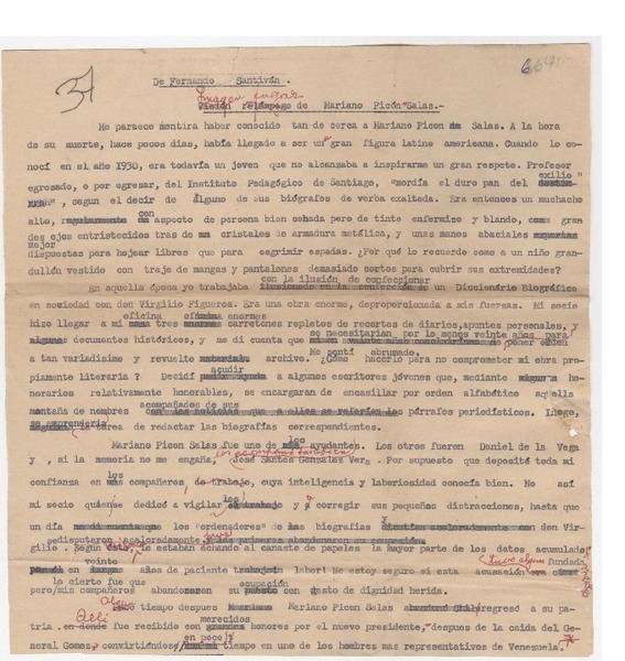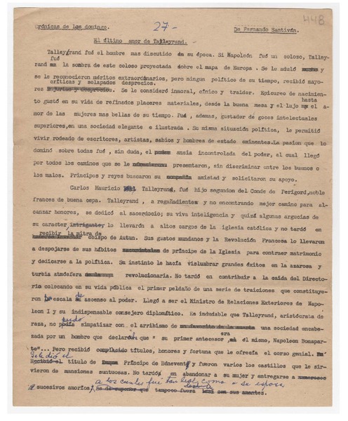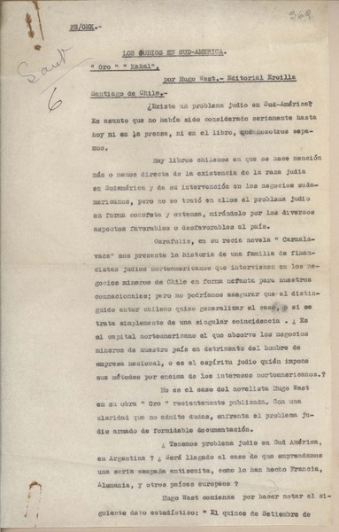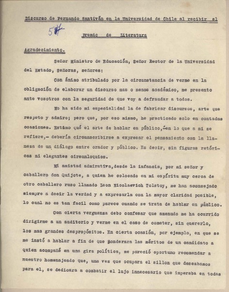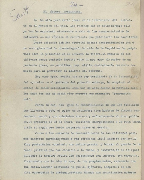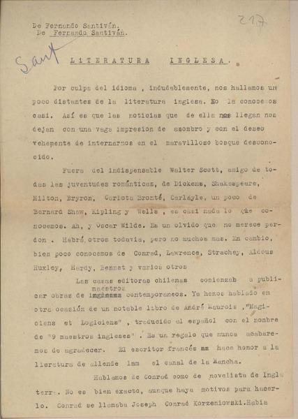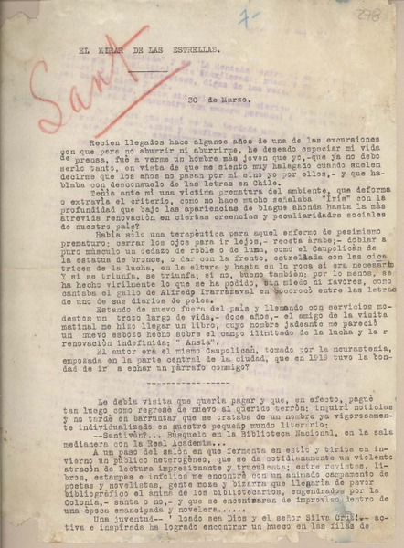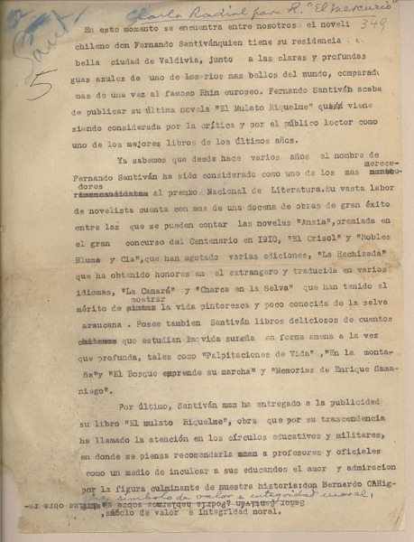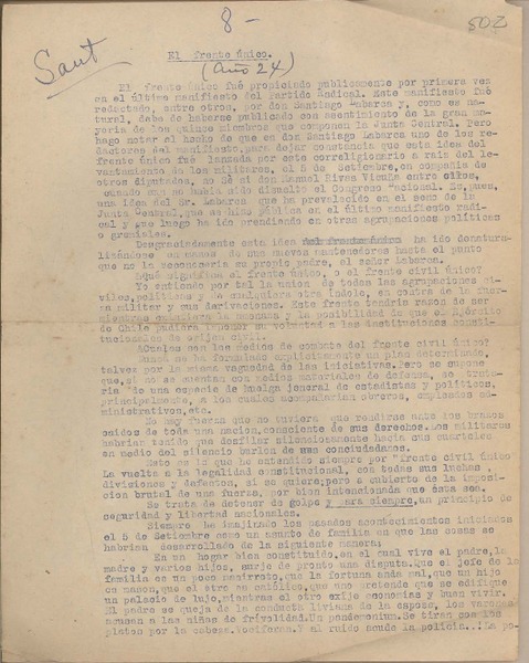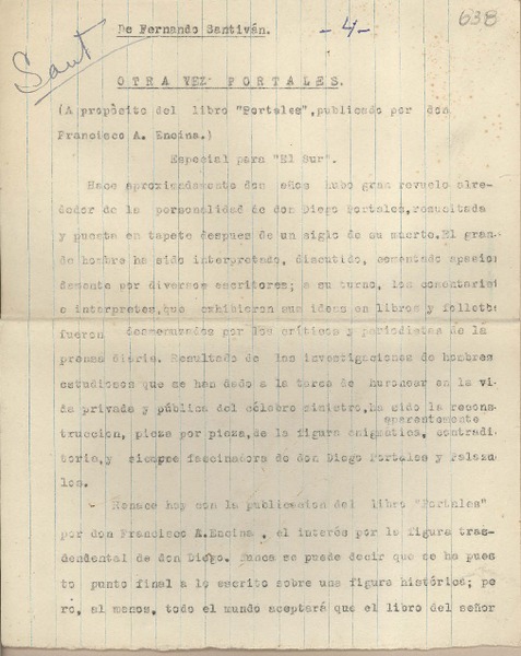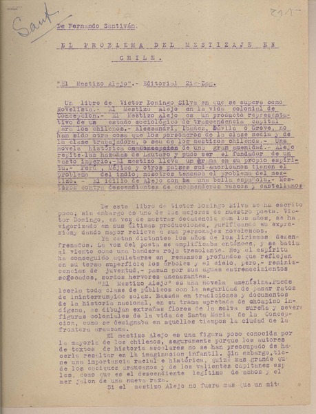 Un estatista gallo [manuscrito] Fernando Santiván.