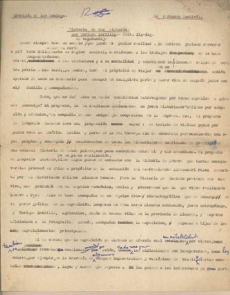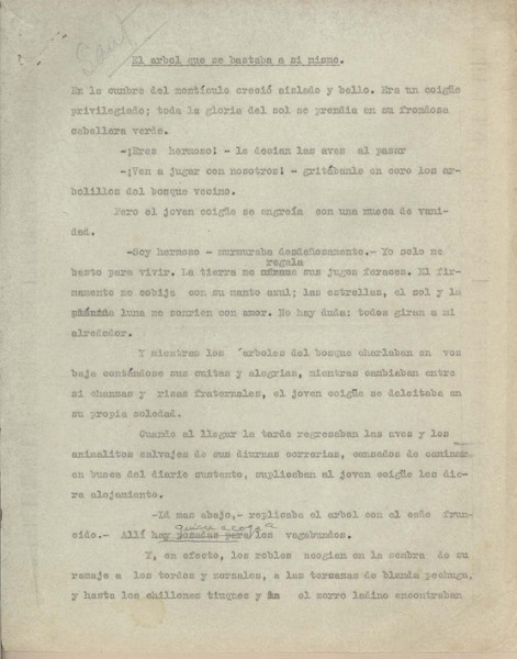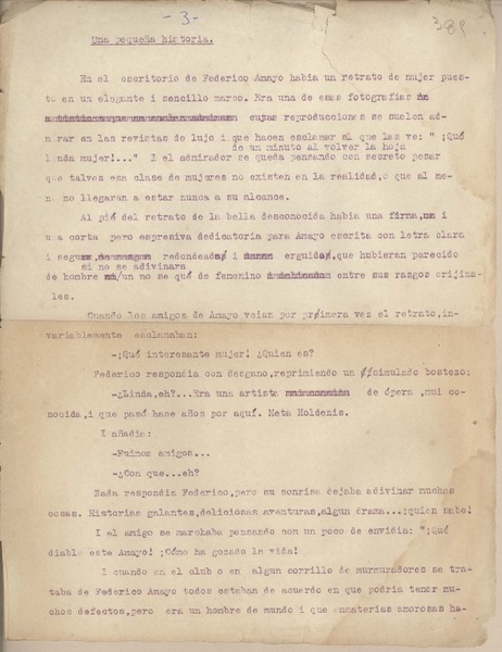 Una pequeña historia [manuscrito] Fernando Santiván.