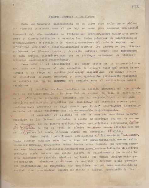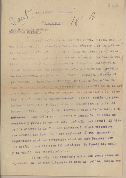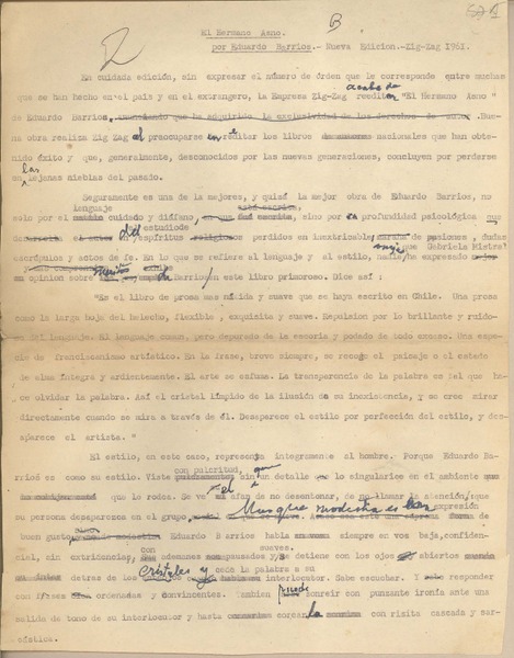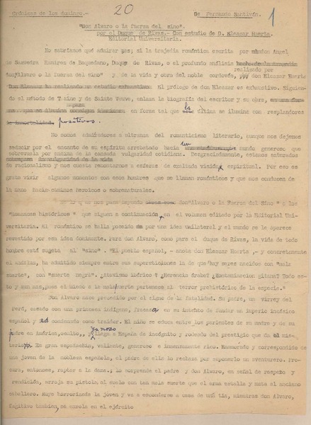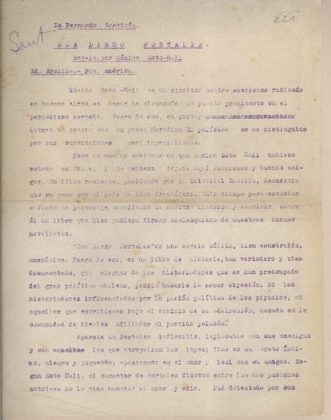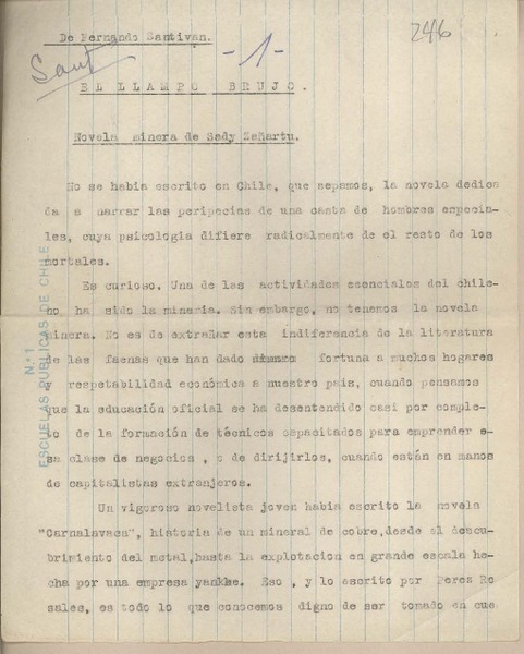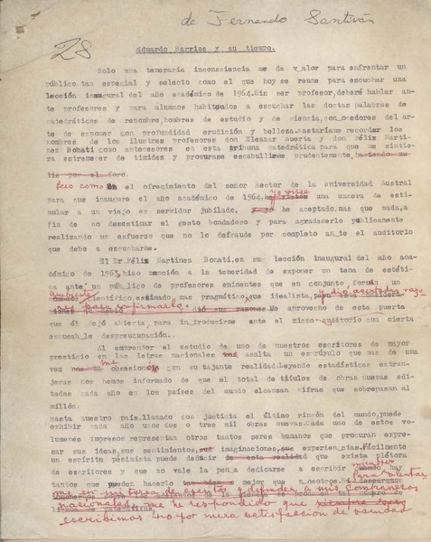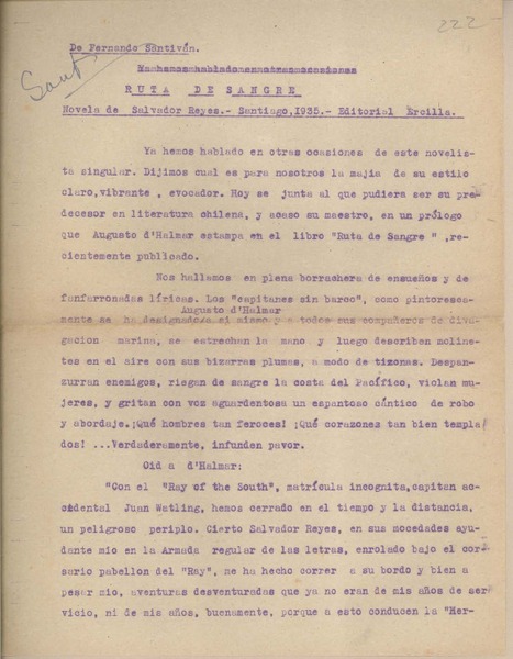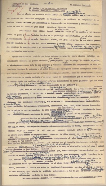 [Un pérdido por Eduardo Barrios] [manuscrito] Fernando Santiván.