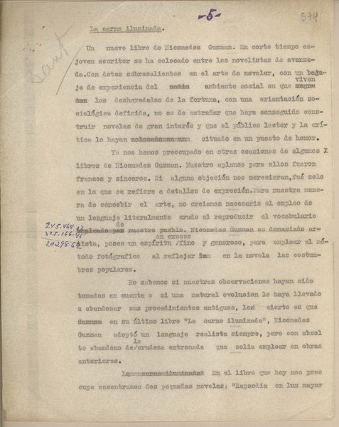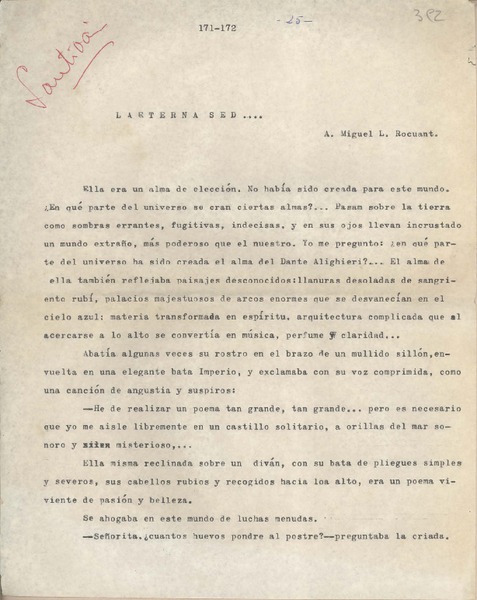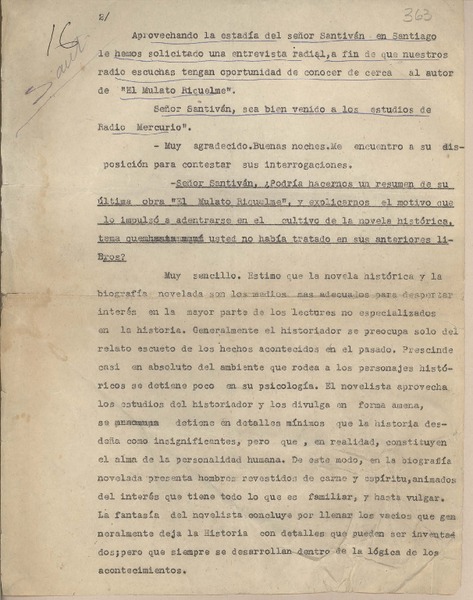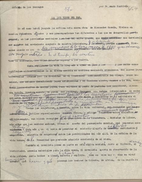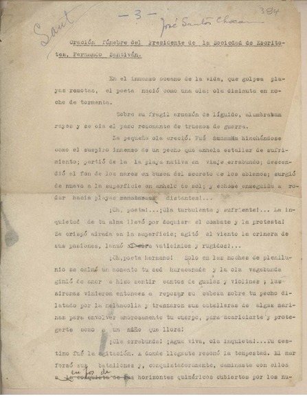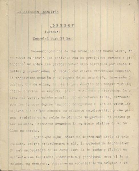 Sucedió una noche [manuscrito] Fernando Santiván.