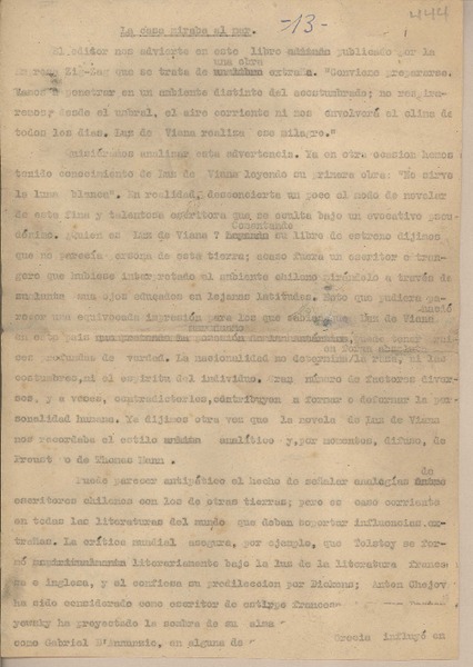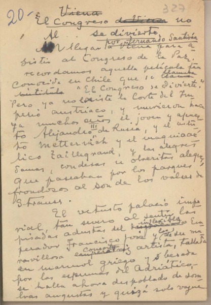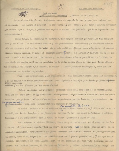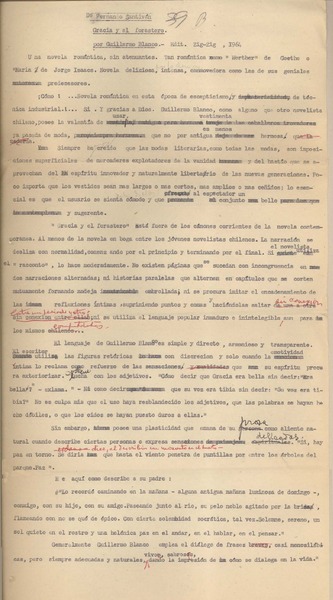 Caballo de copas por Fernando Alegría [manuscrito] Fernando Santiván.