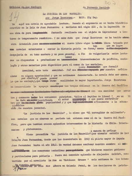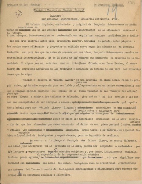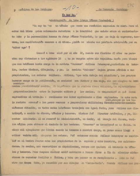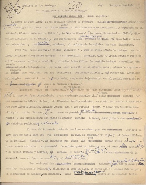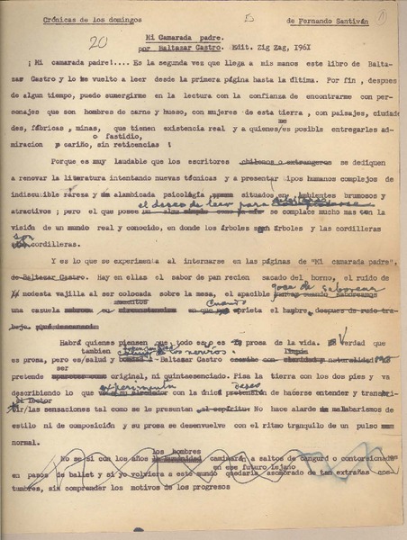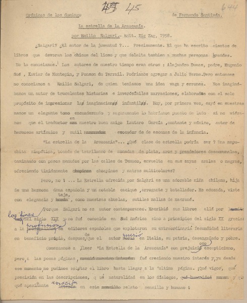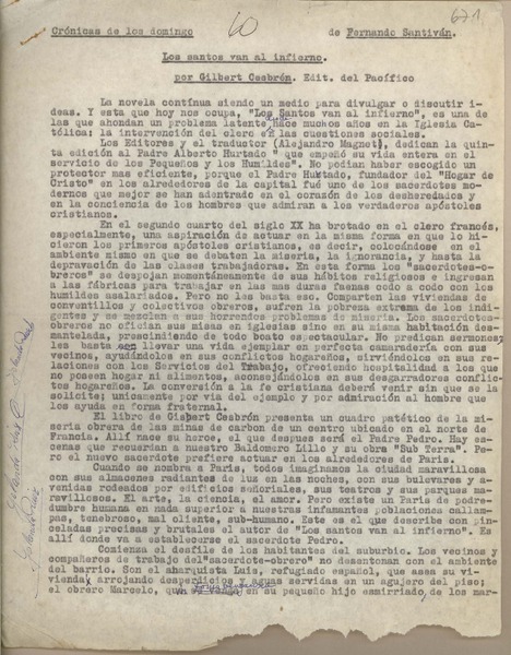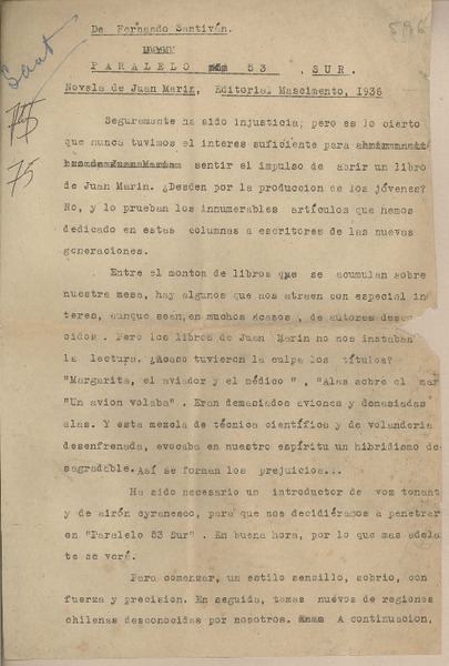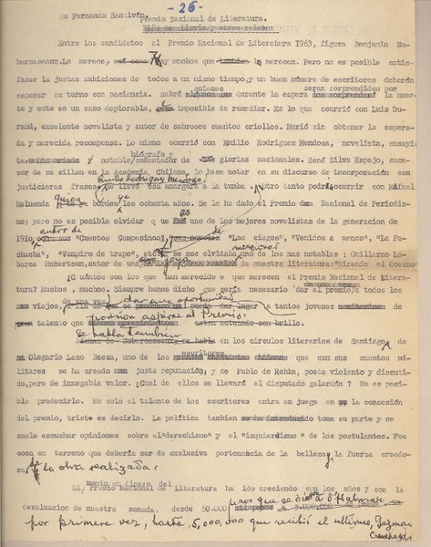 Cajón desastre... o de sastre [manuscrito] Fernando Santiván.
