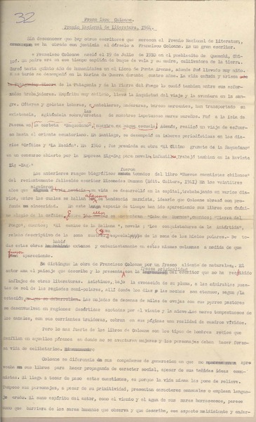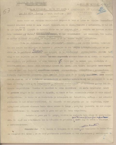 Tierra del fuego - Manuscritos chilenos - Coloane, Francisco - Reseñas de libros