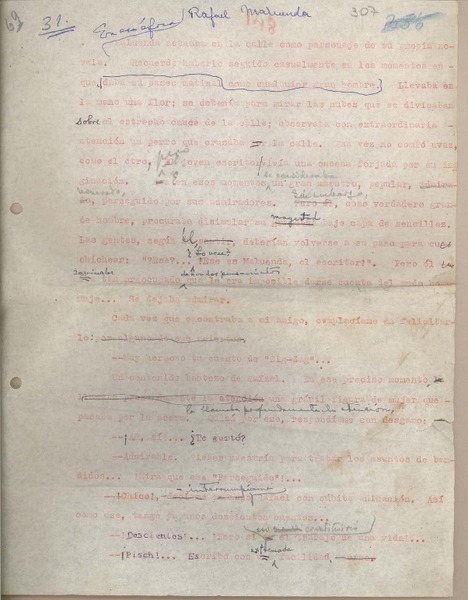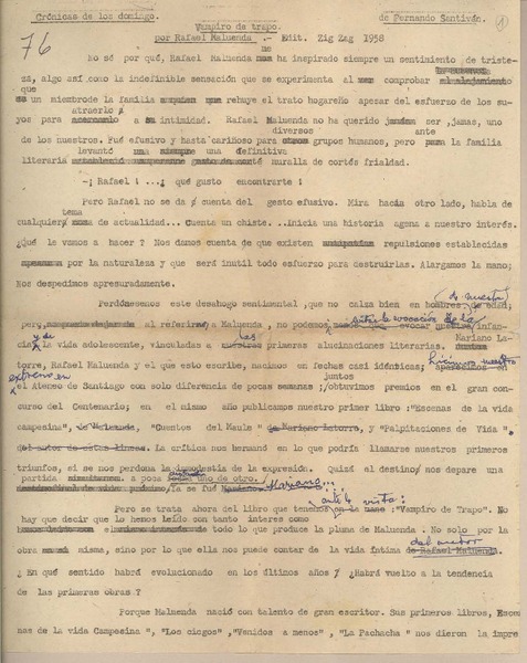 Vampiro de trapo por Rafael Maluenda [manuscrito] Fernando Santiván.