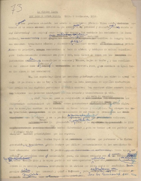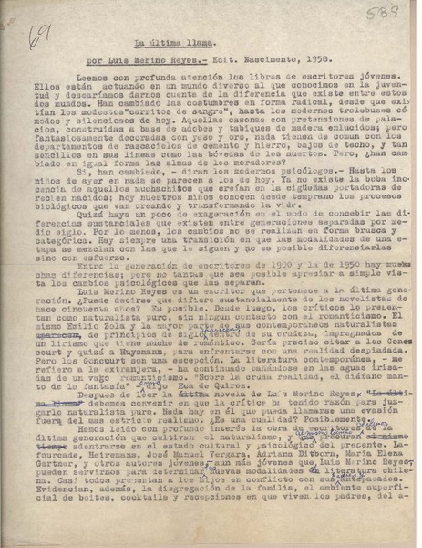 Manuscritos chilenos - Última llama : novela - Reseñas de libros - Merino Reyes, Luis