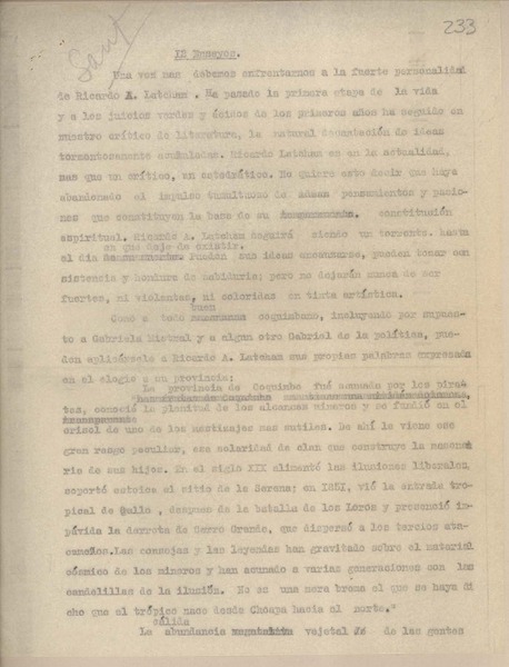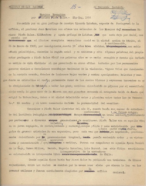 12 ensayos de Latcham [manuscrito] Fernando Santiván.