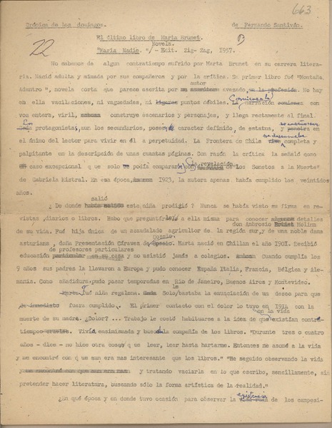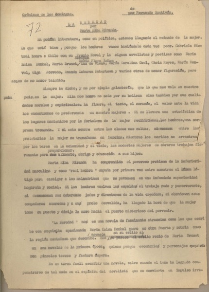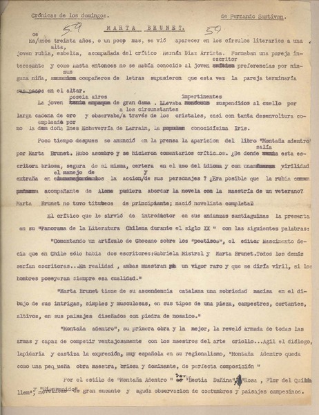 Santiván, Fernando - Brunet, Marta - Manuscritos chilenos - Autores chilenos - Correspondencia - Autoras chilenas