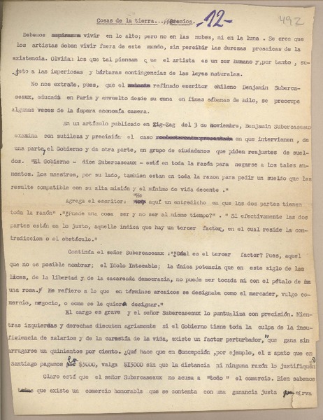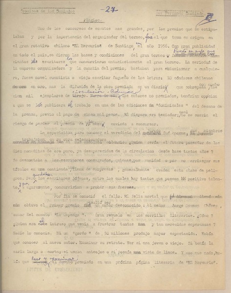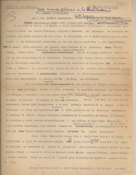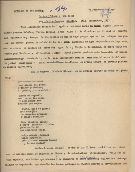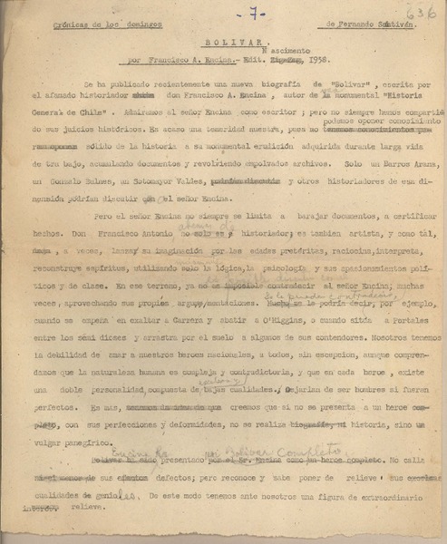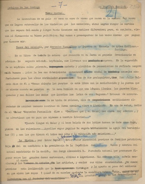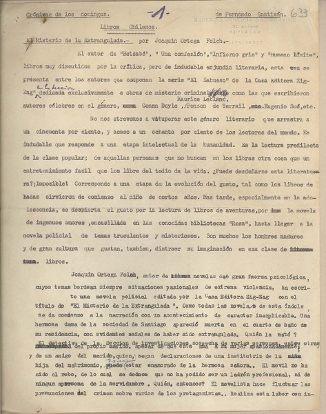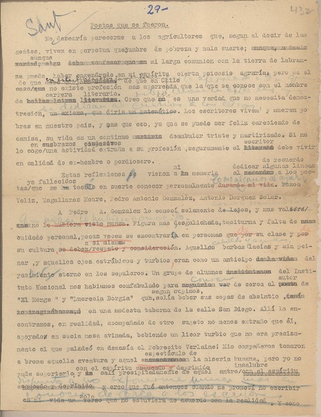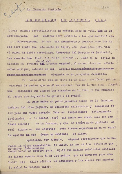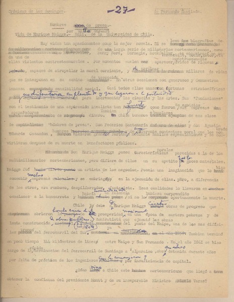 Artículos periodísticos - Manuscritos chilenos - Cruchaga Santa María, Angel