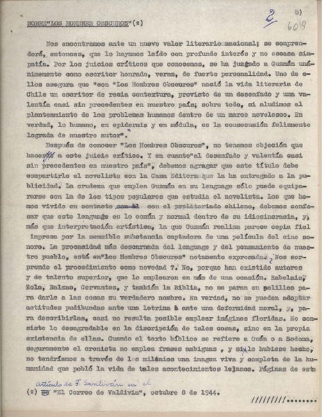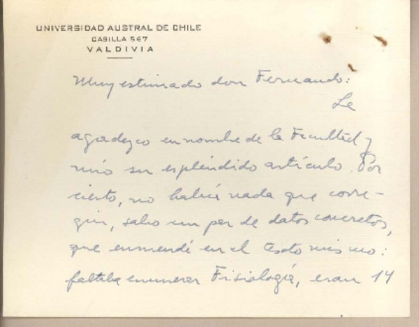 Córdova Rahmer, Guillermo - Correspondencia - Autores chilenos - Manuscritos chilenos - Santiván, Fernando