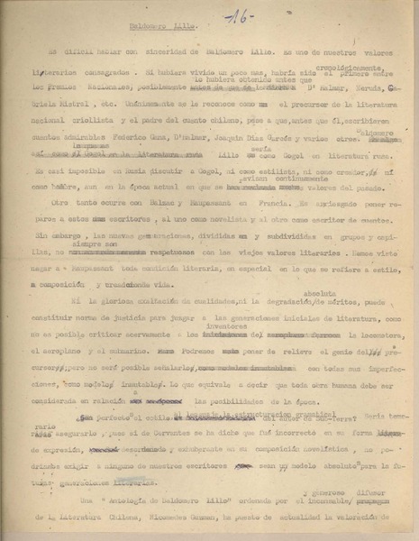 Crónicas - Manuscritos chilenos - Lillo, Baldomero - Crítica e interpretación
