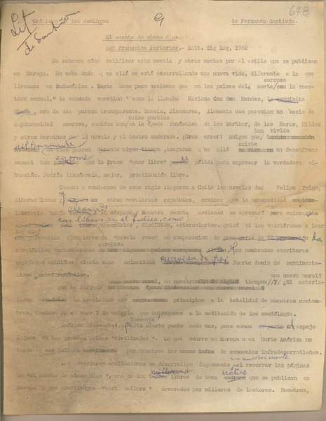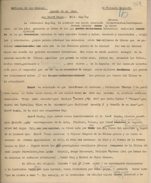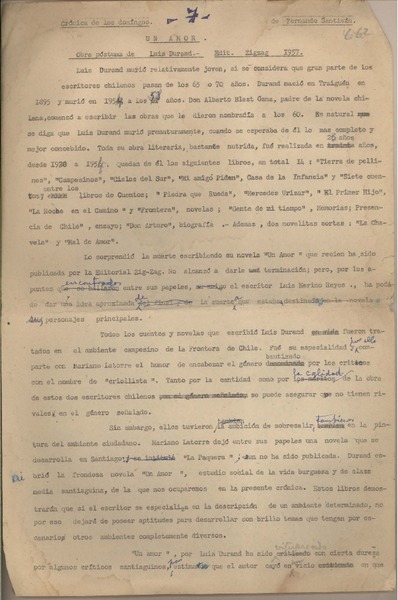 Amor - Manuscritos chilenos - Durand, Luis - Reseñas de libros