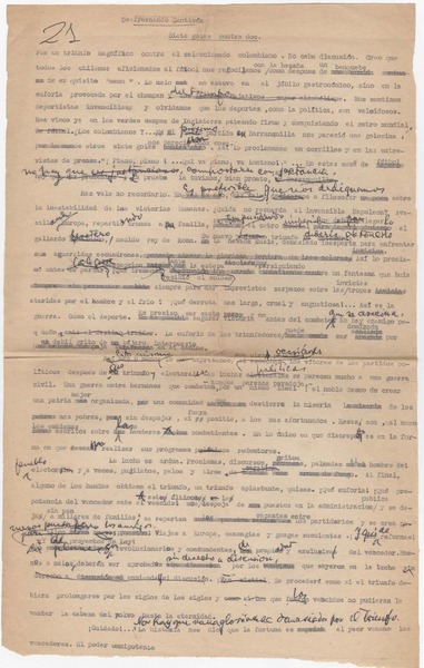 Siete goles contra dos [manuscrito] Fernando Santiván.