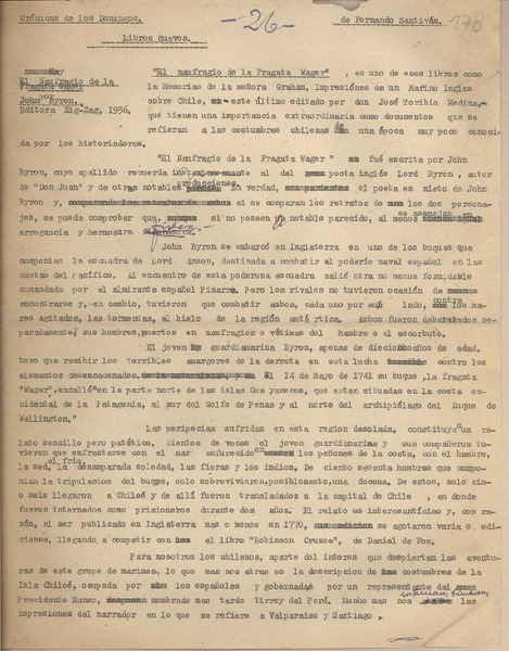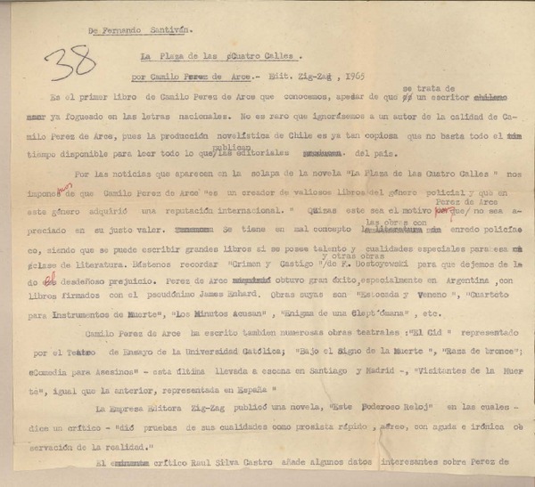 Pinochet Alvis, Aurelio - Manuscritos chilenos - Reseñas de libros