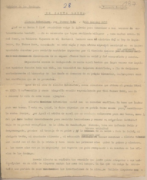 Maravillosa historia de Alberto Schweitzer - Manuscritos chilenos - Reseñas de libros - Dahl, Titt Fasmer