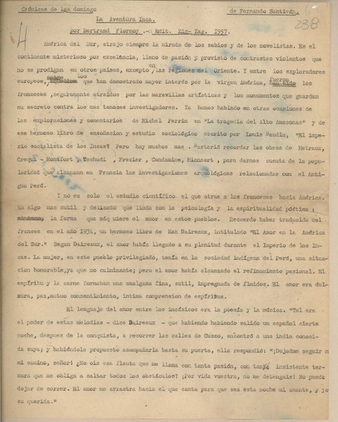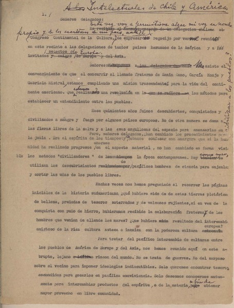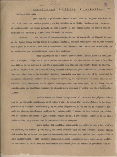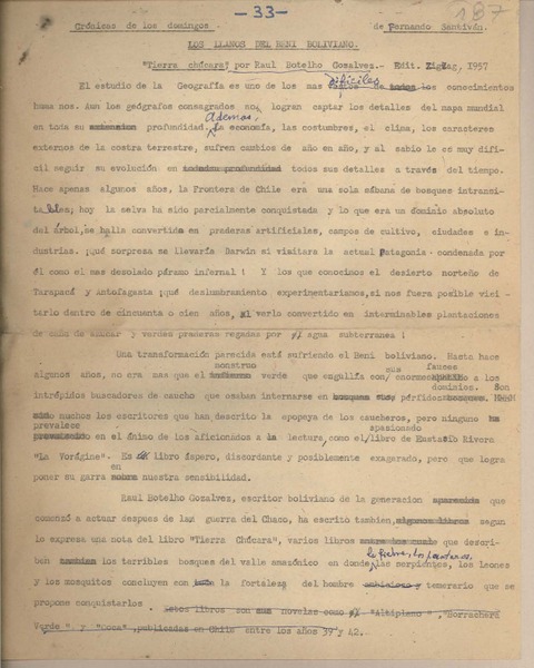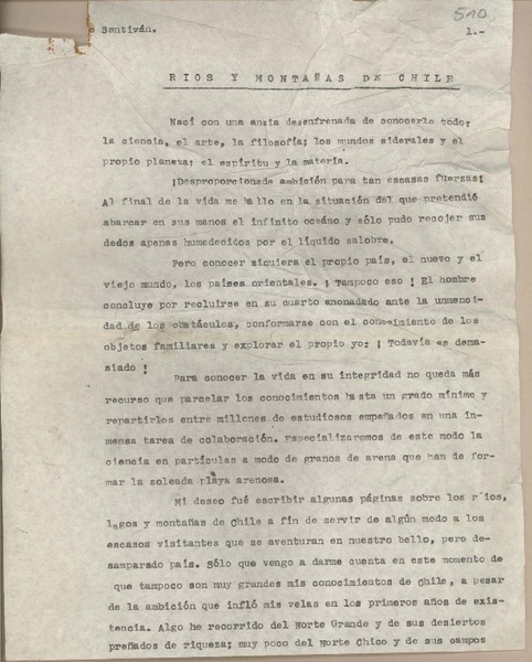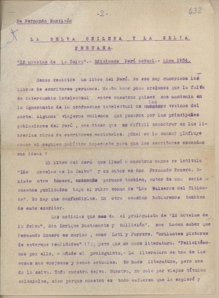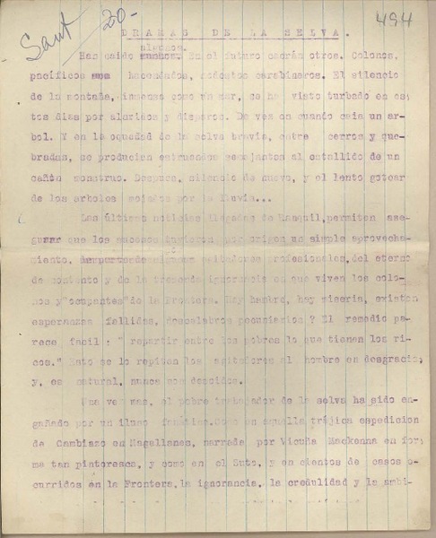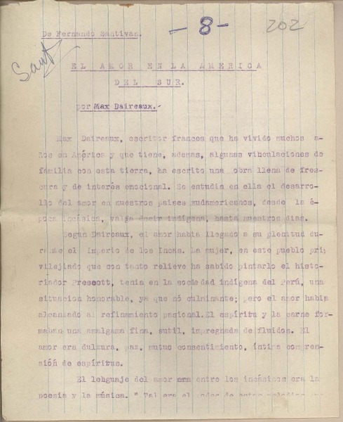 Américas y sus tierras vírgenes [manuscrito] Fernando Santiván.