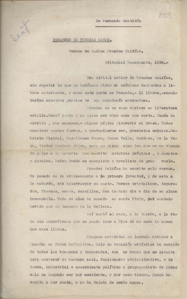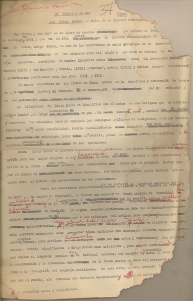 Violando esta hermosa tierra [manuscrito] Fernando Santiván.