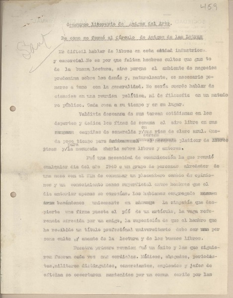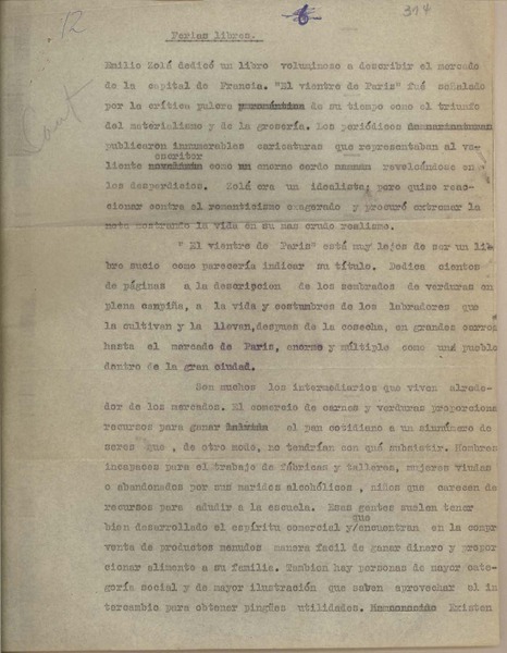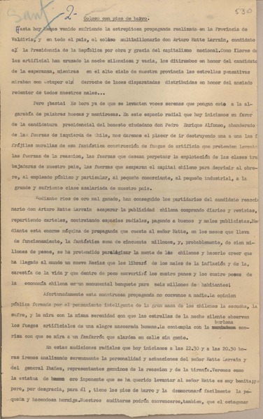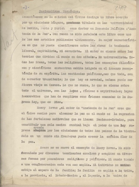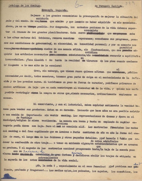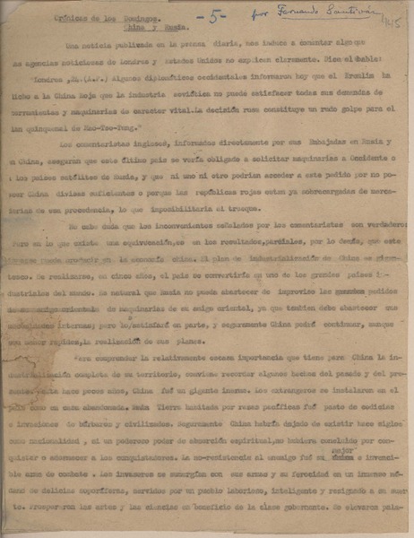 S.E. y el libre comercio [manuscrito] Fernando Santiván.