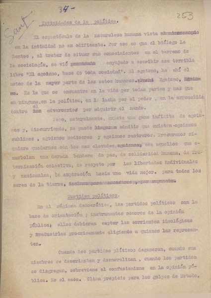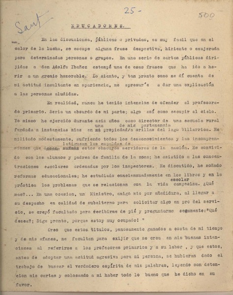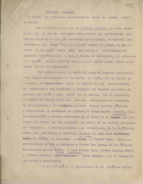 Un maestro de la política [manuscrito] Fernando Santiván.
