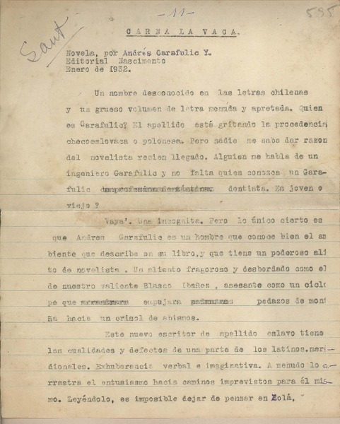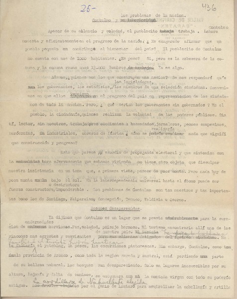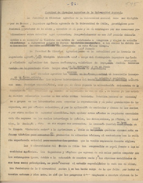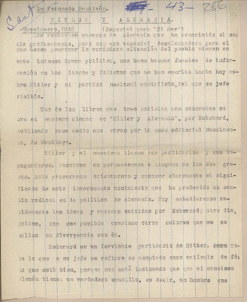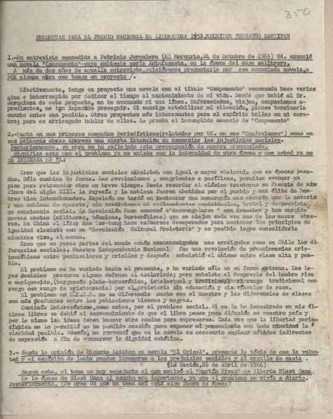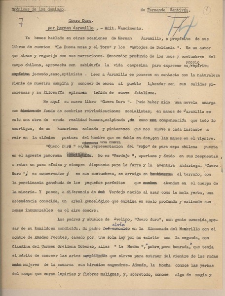 Un foro sobre reforma agraria [manuscrito] Fernando Santiván.