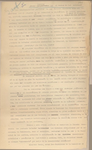 ¿Somos mejores que el hombre de las cavernas? [manuscrito] Fernando Santiván.