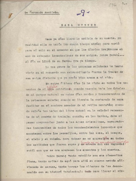 Susana B. de Tallman [manuscrito] Fernando Santiván.